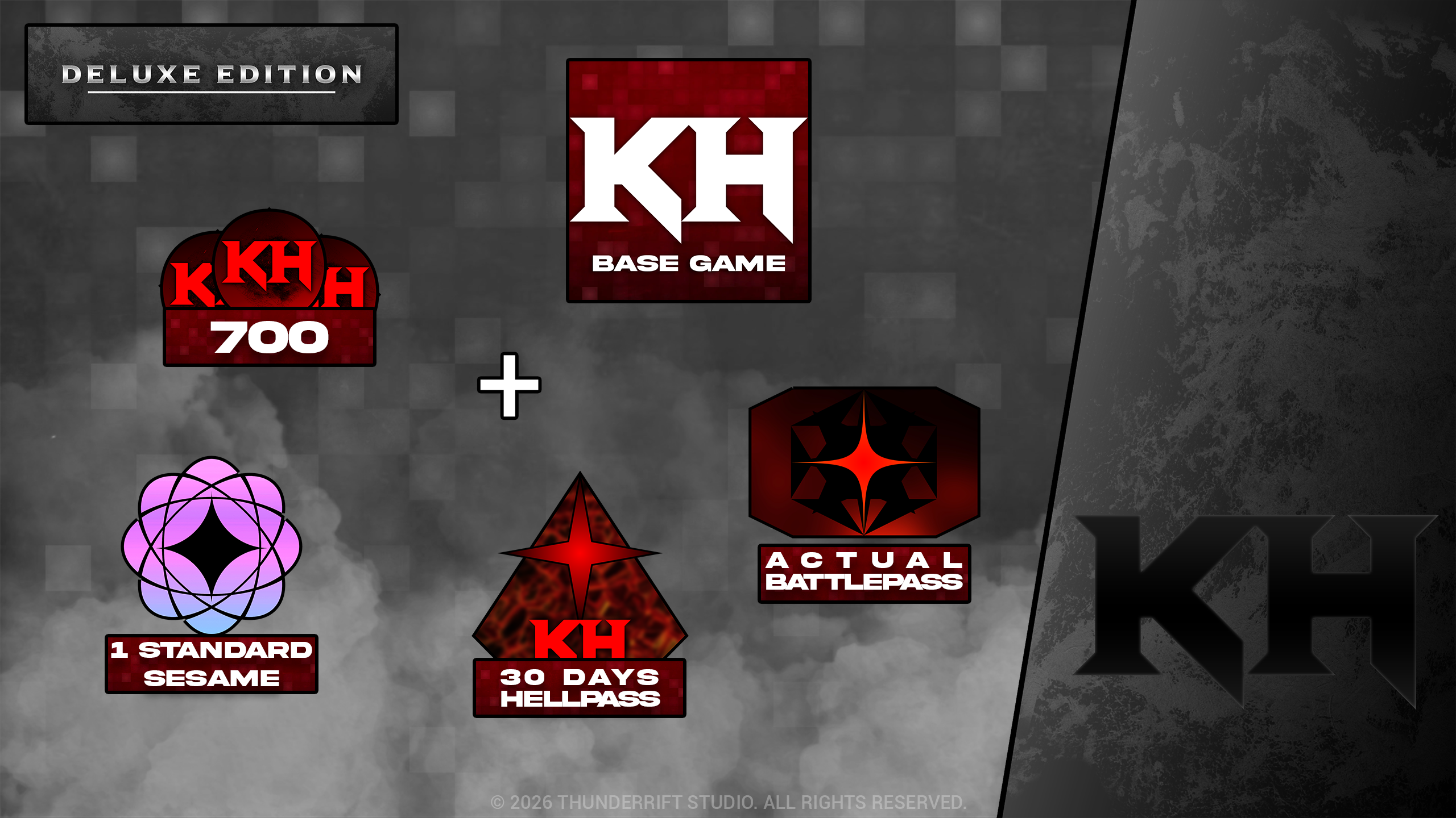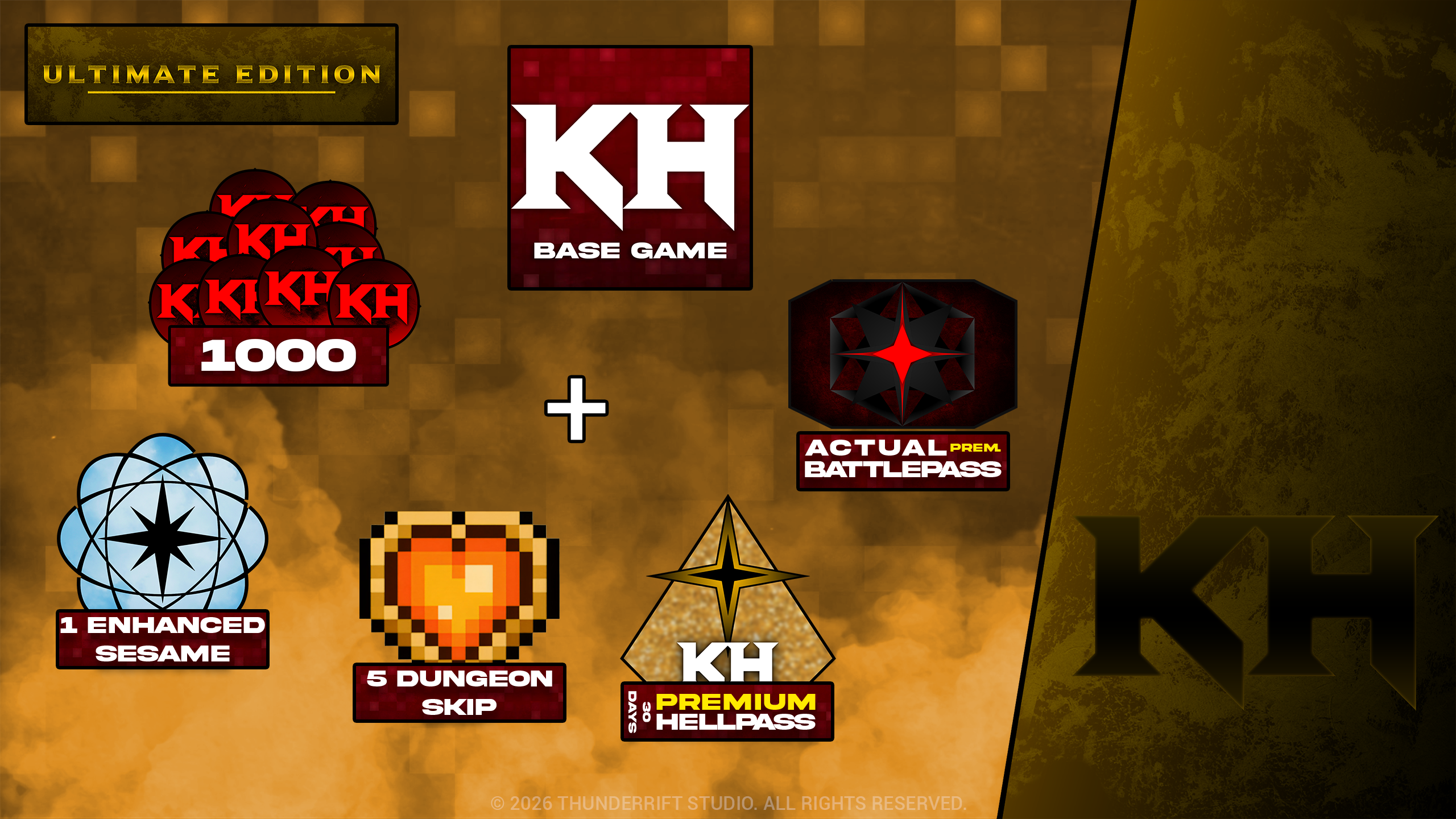 | ÉDITIONS AVEC CONTENU INCLUT : | Jeu de Base | HellCoins | Sésame | Passe de Combat (Saison Actuelle) | Passe de l'Enfer | Skip de Donjon |